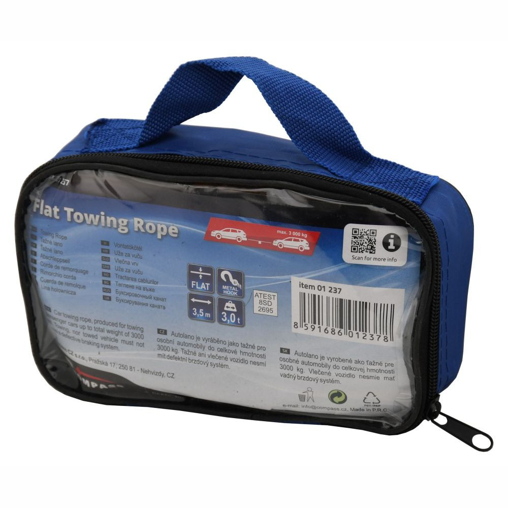 Tažné lano je určeno k tažení vozidel do celkové hmotnosti 3 tuny. Lano je dlouhé 3,5 metru a na každém konci je zakončeno kovovými háky.
